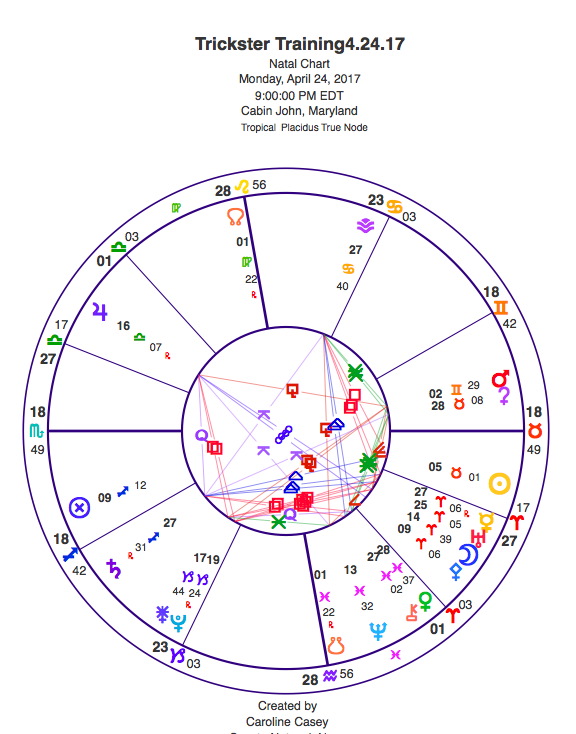 And that’s why we also look at Jupiter in Libra of the Venus’ other sign, presiding over the night sky, really great you know from eight P.M. on to through the whole night as I was under the Sinai desert sky you know it was so bright no moon was waxing when I was there and but but Jupiter so bright you know I just it was too exciting to go to sleep I would just go ‘Wow there’s Jupiter – it’s really exciting!’ Jupiter retrograde in Libra until June 9th – re·trieving old practices, old stories, bringing them alive again. In our own personal lives, in wisdom traditions, all of that… so the part that I wed with the Lakota elder talking about ‘the practice – the pragmatic mystic practice of brokering deals through the practice of reverie and respect…’ woah – Oh! {trickster Chris in San Francisco chimes in about Jupiter in the night sky SE} Yes Jupiter Jupiter is probably rising where you are right now. In the in the East – and it’s and it’s pretty much I mean Saturn will rise in a couple hours but yeah and then we get a little bit of Mars sitting in the West after sunset but yeah so there’s there’s Jupiter shining down on you. It was also you know the whole time I was in the desert you know. Oh there we go the whole time I was in the desert Jupiter was on 18° of Libra – right on my Saturn – which is why I was like ‘oh oh we are part of a larger story OK it is downloading.’ There we go ‘Pluto squaring my Saturn and Jupiter is right on it OK I know things that even I don’t know that I know’ – but yeah and so what I want to see what I always loved syncretizing, that I want to bring alive is –